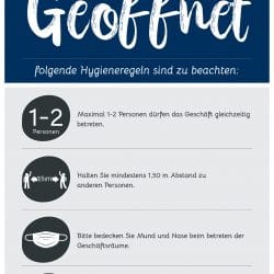 Als Dienstleistungsunternehmen sind die Vorschriften zwar nicht ganz so umfangreich, wie z.B. in Supermärkten, dennoch möchten und müssen auch wir auf die üblichen Hygieneregeln hinweisen.